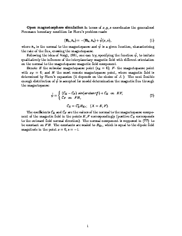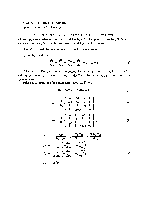 trace) closed Beard's, 1960 magnetosphere. The flow parameters are