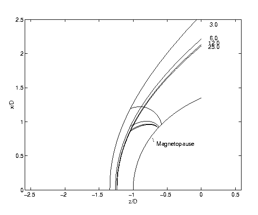magnetopause shape and position and Mach numbers 3.0, 6.0, 12.0,