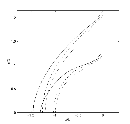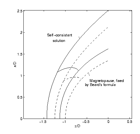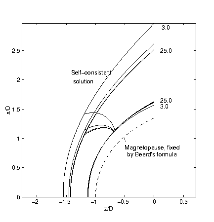 flow parameters are as in Figure 1. The fixed magnetopause,